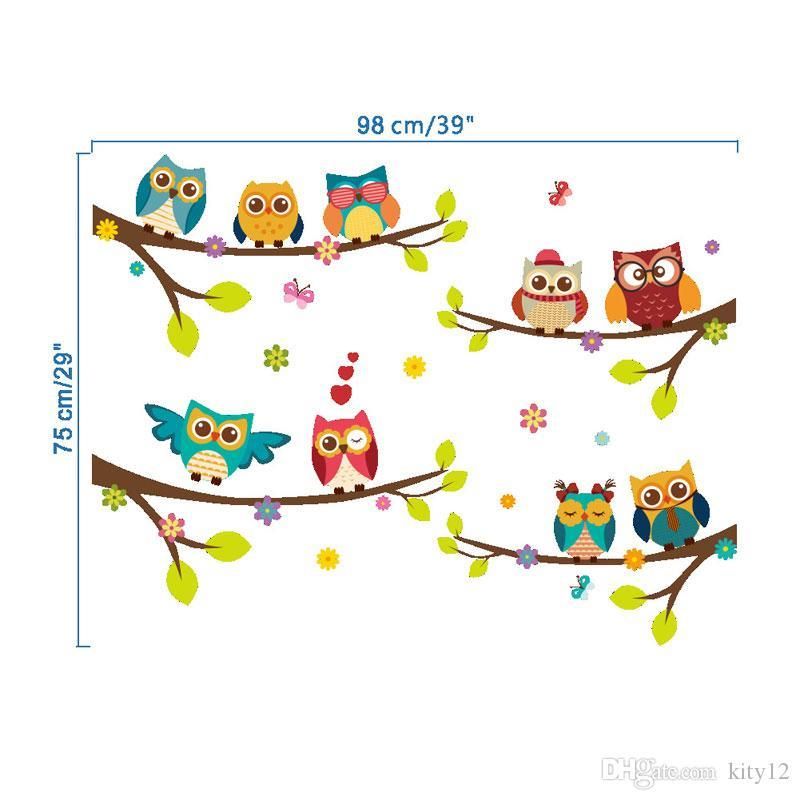 Cartoon Cute Lovely Bird Owl Tree Wall Stickers For Kids Living